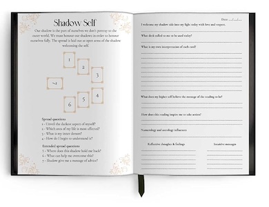 If you love tarot spreads like I do and you’re currently working on the shadow aspects of yourself, this journal will help give you better insight. At the start we are greeted by a guide on how to use this journal. There’s a side with the tarot spread and a side with questions and prompts, laying the blueprint for all the future queries.