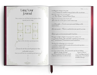 Within the pages of this journal, the author and illustrator have provided tips, spreads, and plenty of room to record your own card draw and daily musings on both specially designed layouts and lined pages. The special pages where you can record your daily intentions, card spread, card draw, and interpretations are custom designed for the avid card reader.
