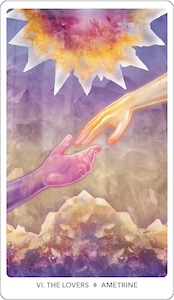 “You will see that our focus is about the energy and feeling of the cards, infusing the tarot archetype with the crystal, and vice versa, more so than fitting all the traditional symbols, colors, and images into each card. The goal is to distill each of the seventy-eight cards into a feeling that is truly relatable and pair that feeling with a crystal that supports the specific energy.”1