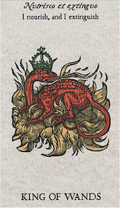 In Tarot Emblemata, Roland repurposes Paradin’s emblems, which can be viewed here, to provide a fresh twist on the traditional tarot cards. This unique deck is comprised of 83 full-color cards: the traditional 78 cards of the Major and Minor Arcana along with five additional oracle cards. Weaving the emblems of Paradin (as well as a few by Bernard Salomon from an updated 1557 edition) and Latin mottos into the tarot’s archetypal structure, Roland has created a deck that illuminates the timeless insights of the Renaissance. This truly unique approach makes for some interesting reads!