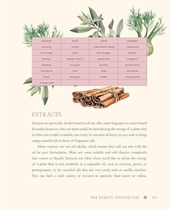 The other chapter in “Part I: The foundation of beauty” is an introduction to the items used for natural beauty products: plants and herbs, fragrance oils, essential oils, carrier oils, extracts, creams and lotions, salts and sugars, waters, and alcohols and witch hazel. While there are whole books written on these topics, Anderson gives enough information to make readers feel knowledgeable enough about these products to feel comfortable trying out the recipes later in the book.