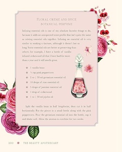 The chapters focus on everyday beauty and then beauty for hair, body, and fragrances. In this part, the recipes are a bit more elaborate, guiding readers to work with base products (carrier oils, lotions), specific ingredients (herbs, essential oils), and tools (double broiler or crock pot, the right containers for the items). These acts of cultivating beauty often require time and intention, asking us to pause in a world that rewards speed, but the investment is a worthwhile one.
